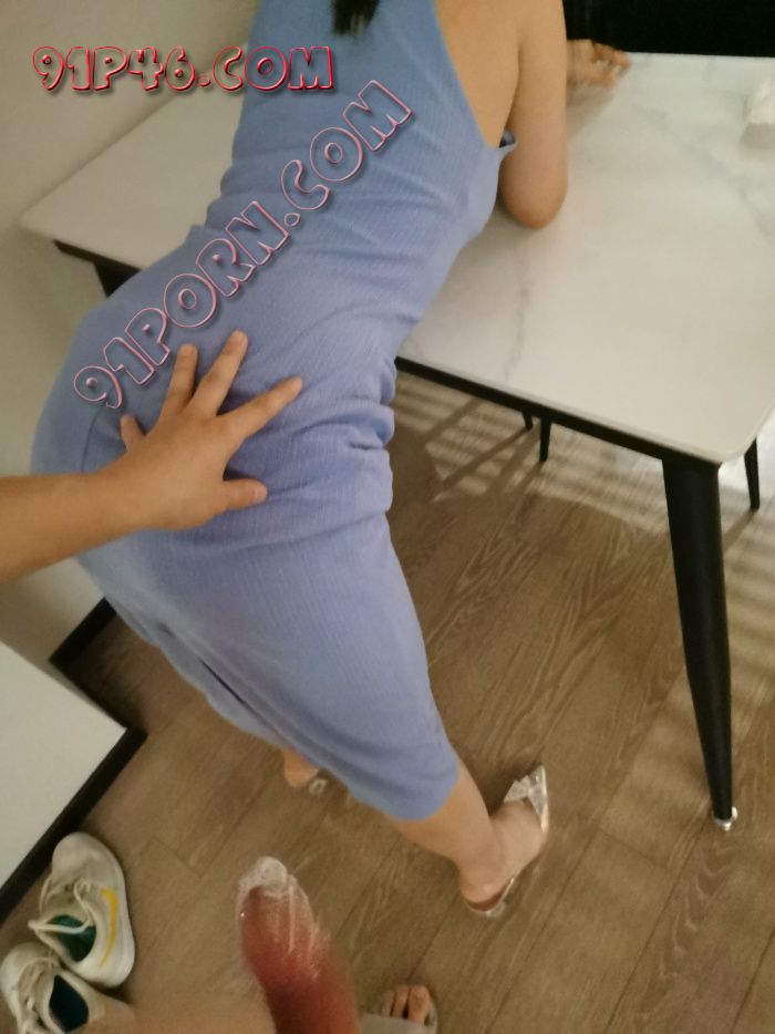 蓝色包臀裙。