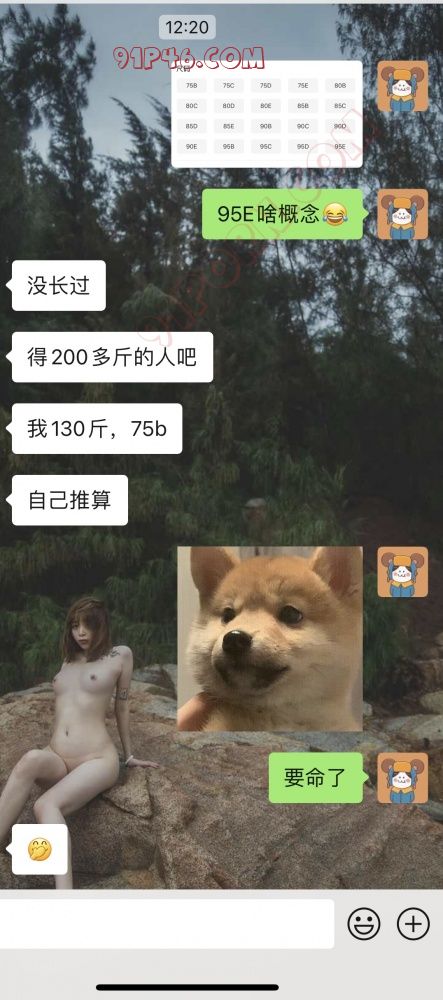 胸围95cm,E杯。女子体密度低,估计体重确实200斤左右。类似贾玲身材。重型坦克。