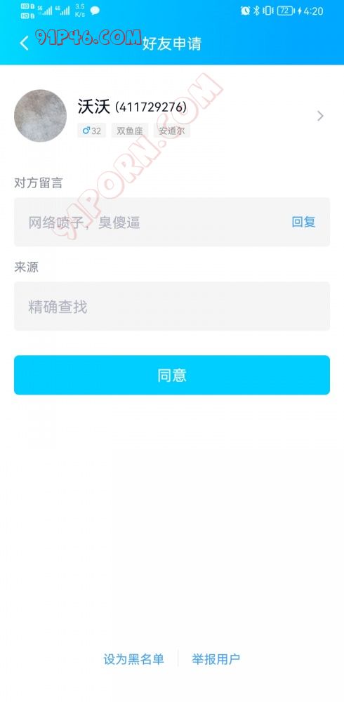 上午遇见这货加我,我到底该不该骂他呢?关键是我到现在也没想明白自己喷啥了?在论坛偶有评论也是本着友好与尊重和实事求是的态度参与,从未说过骂人的脏话。算了,就当他是个屁就把它放了。真心觉得这种“人”(之所以在这里的人要打个双引号,是因为觉得他连作为一个人最基本的素养都没有。)很可悲可叹可怜!