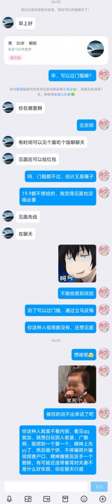 麻花滕:三八三七五五九二一六,再说一遍,屌丝脑残有病的勿扰,会骂人,想白嫖的把你媳妇拿出来免费玩再说。