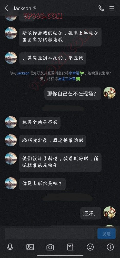 上来说自己是91小烤肉,在苏州吴江城南说了一堆关于绿帽的想法,打算找我约个时间见面,缓了一阵子,又找到我,定好时间地点
