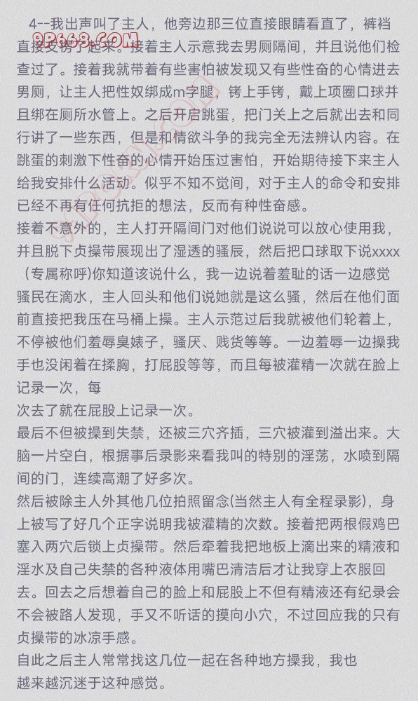 如果你渴望获得这种身份的反差所带来的刺激和兴奋,那就爬到爷这里来。摘下面具,脱掉伪装,顺从自己下贱的本性,无耻的欲望,百般讨好主人,苦苦哀求主人,只为得到主人的虐待折磨剥削